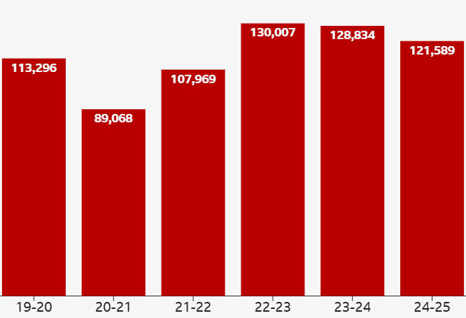In November 2025, the BBC published theft statistics: