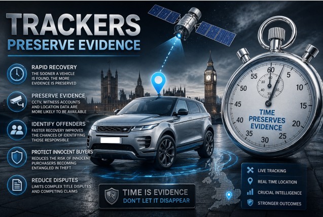As discussed in the previous article, time plays a crucial role in determining whether a recovered vehicle case remains straightforward or becomes a complex dispute involving insurers, buyers and competing claims to ownership. By acting faster and enabling recovery, trackers can help preserve the evidential trail that would otherwise fade with time.