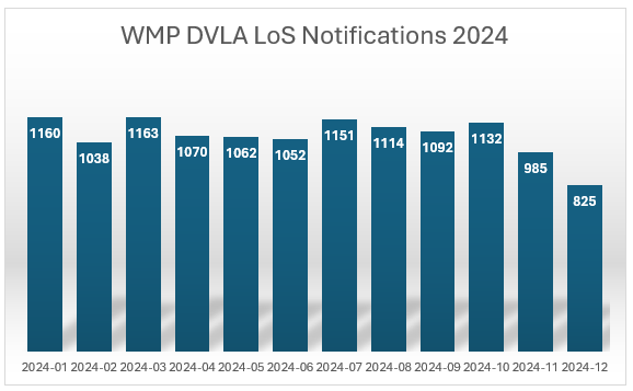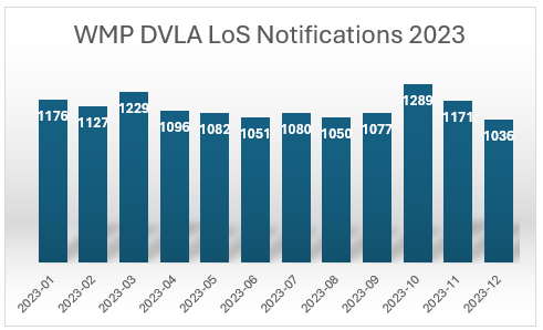 In 2023, WMP notified the DVLA of 13,464 LoS (lost or stolen) VRMs (vehicle registration marks), in 2024, the notifications had reduced by 620 to 12,844. These figures are for all vehicles and only represent those that reached the DVLA